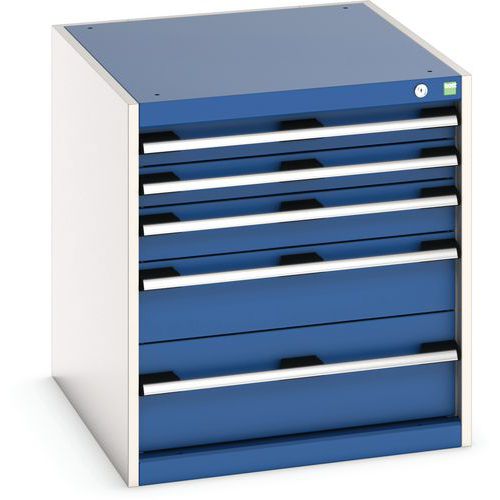 Dílenská zásuvková skříň Bott Cubio, 70 x 65 x 75 cm, 5 zásuvek, šedá-modrá