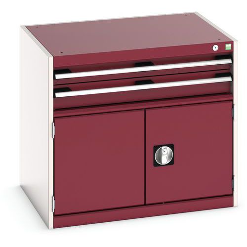 Dílenská zásuvková skříň Bott Cubio, 70 x 80 x 65 cm, 2 zásuvky, 1 skříňka, šedá-červená