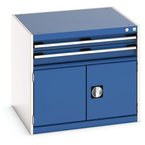 Dílenská zásuvková skříň Bott Cubio, 70 x 80 x 75 cm, 2 zásuvky, 1 skříňka, šedá-modrá