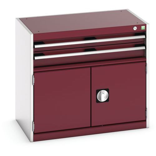 Dílenská zásuvková skříň Bott Cubio, 70 x 80 x 52,5 cm, 2 zásuvky, 1 skříňka, šedá-červená