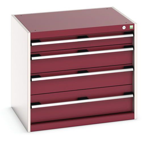Dílenská zásuvková skříň Bott Cubio, 70 x 80 x 65 cm, 4 zásuvky, šedá-červená