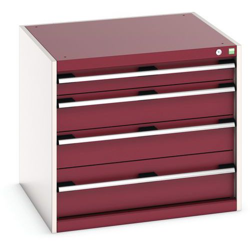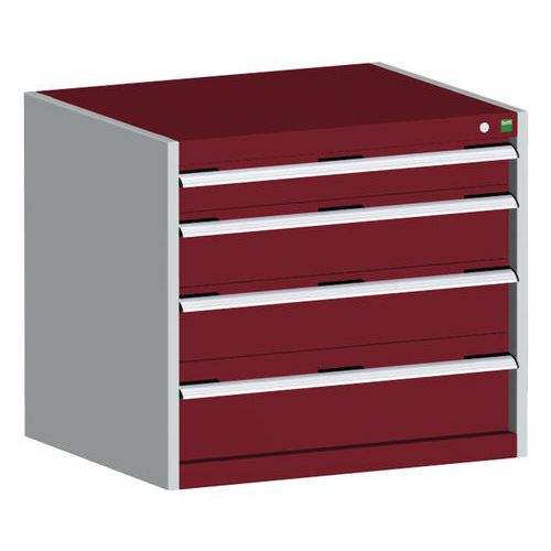Dílenská zásuvková skříň Bott Cubio, 70 x 80 x 75 cm, 4 zásuvky, šedá-červená