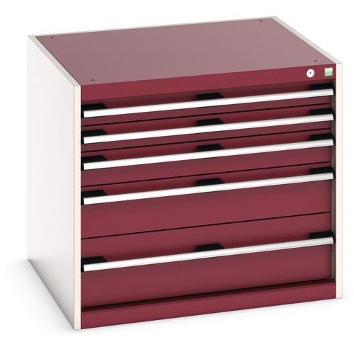 Dílenská zásuvková skříň Bott Cubio, 70 x 80 x 75 cm, 5 zásuvek, šedá-červená