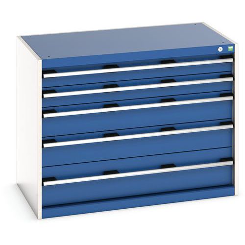 Dílenská zásuvková skříň Bott Cubio, 80 x 105 x 65 cm, 5 zásuvek, šedá-modrá