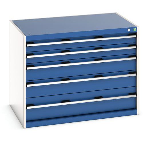 Dílenská zásuvková skříň Bott Cubio, 80 x 105 x 75 cm, 5 zásuvek, šedá-modrá