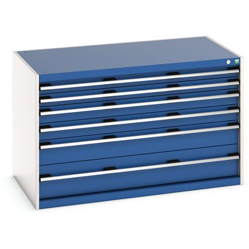 Dílenská zásuvková skříň Bott Cubio, 80 x 130 x 75 cm, 6 zásuvek, šedá-modrá