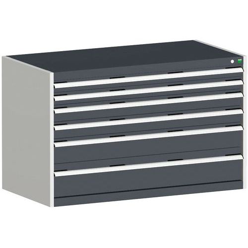Dílenská zásuvková skříň Bott Cubio, 80 x 130 x 75 cm, 6 zásuvek, šedá-antracit