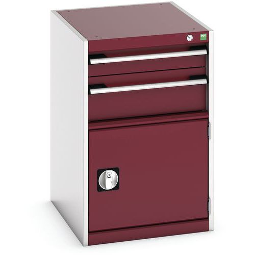 Dílenská zásuvková skříň Bott Cubio, 80 x 52,5 x 65 cm, 2 zásuvky, 1 skříňka, šedá-červená