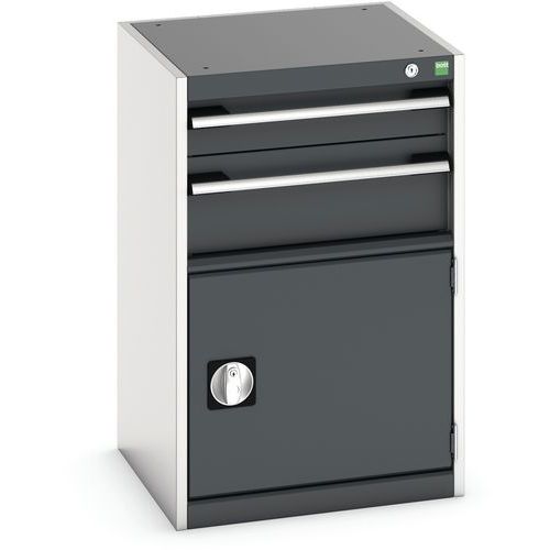 Dílenská zásuvková skříň Bott Cubio, 80 x 52,5 x 52,5 cm, 2 zásuvky, 1 skříňka, šedá-antracit