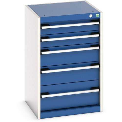 Dílenská zásuvková skříň Bott Cubio, 80 x 52,5 x 52,5 cm, 5 zásuvek, šedá-modrá