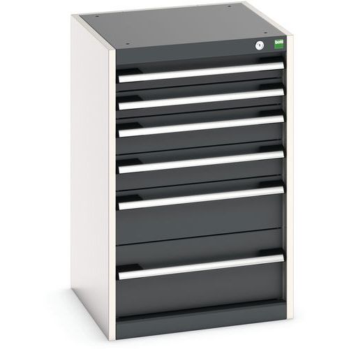 Dílenská zásuvková skříň Bott Cubio, 80 x 52,5 x 52,5 cm, 6 zásuvek, šedá-antracit