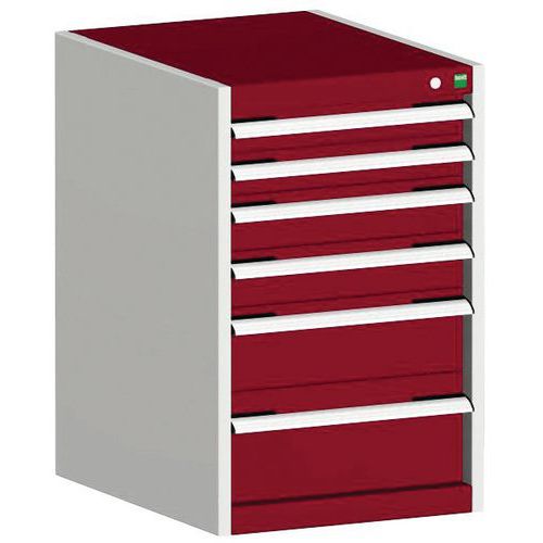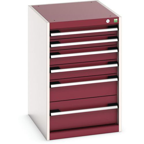 Dílenská zásuvková skříň Bott Cubio, 80 x 52,5 x 65 cm, 6 zásuvek, šedá-červená