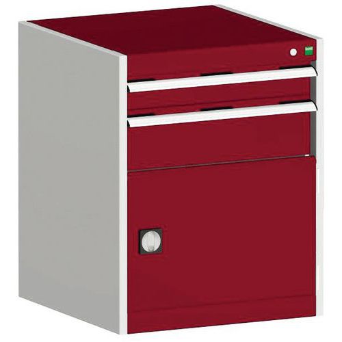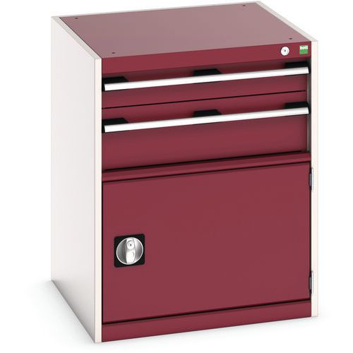 Dílenská zásuvková skříň Bott Cubio, 80 x 65 x 65 cm, 2 zásuvky, 1 skříňka, šedá-červená