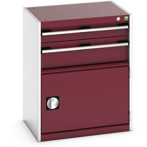 Dílenská zásuvková skříň Bott Cubio, 80 x 65 x 52,5 cm, 2 zásuvky, 1 skříňka, šedá-červená