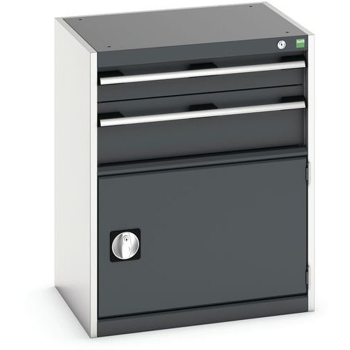 Dílenská zásuvková skříň Bott Cubio, 80 x 65 x 52,5 cm, 2 zásuvky, 1 skříňka, šedá-antracit