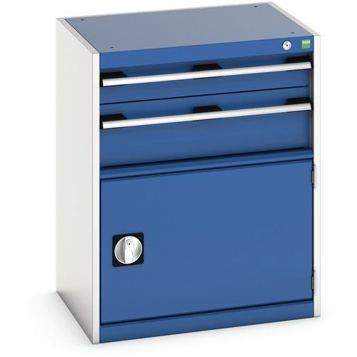 Dílenská zásuvková skříň Bott Cubio, 80 x 65 x 52,5 cm, 2 zásuvky, 1 skříňka, šedá-modrá