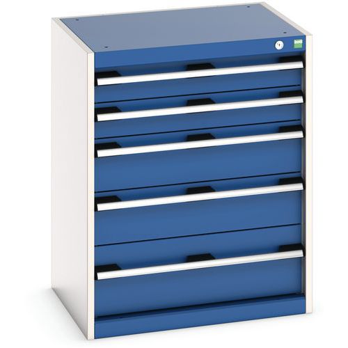 Dílenská zásuvková skříň Bott Cubio, 80 x 65 x 52,5 cm, 5 zásuvek, šedá-modrá