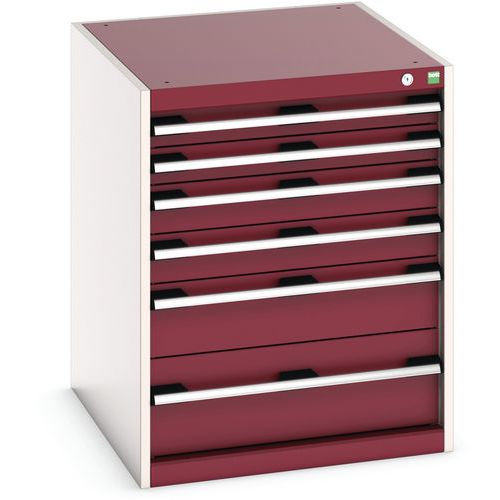 Dílenská zásuvková skříň Bott Cubio, 80 x 65 x 75 cm, 6 zásuvek, šedá-červená
