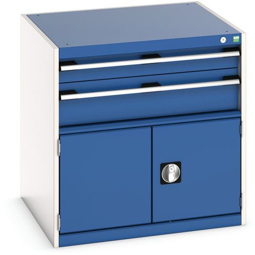 Dílenská zásuvková skříň Bott Cubio, 80 x 80 x 75 cm, 2 zásuvky, 1 skříňka, šedá-modrá