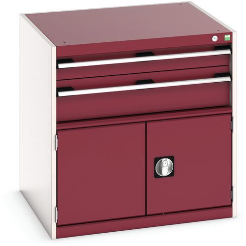Dílenská zásuvková skříň Bott Cubio, 80 x 80 x 75 cm, 2 zásuvky, 1 skříňka, šedá-červená
