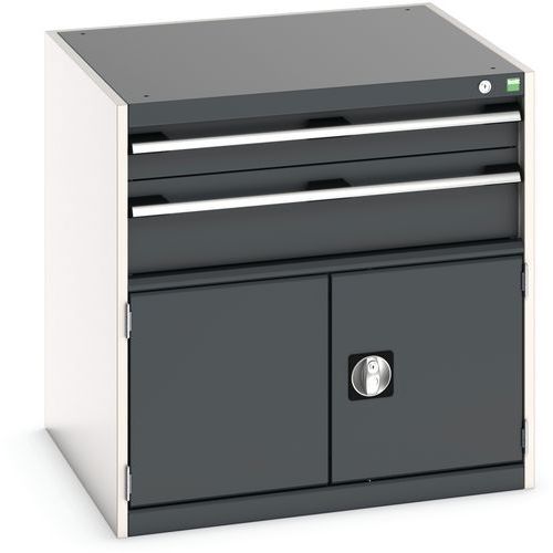 Dílenská zásuvková skříň Bott Cubio, 80 x 80 x 75 cm, 2 zásuvky, 1 skříňka, šedá-antracit