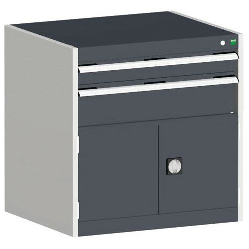 Dílenská zásuvková skříň Bott Cubio, 80 x 80 x 52,5 cm, 2 zásuvky, 1 skříňka, šedá-antracit