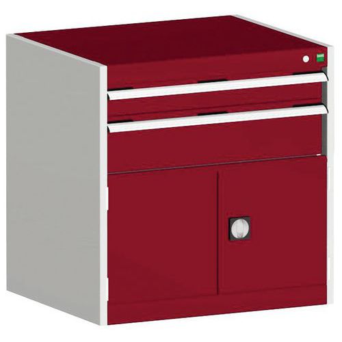 Dílenská zásuvková skříň Bott Cubio, 80 x 80 x 52,5 cm, 2 zásuvky, 1 skříňka, šedá-červená