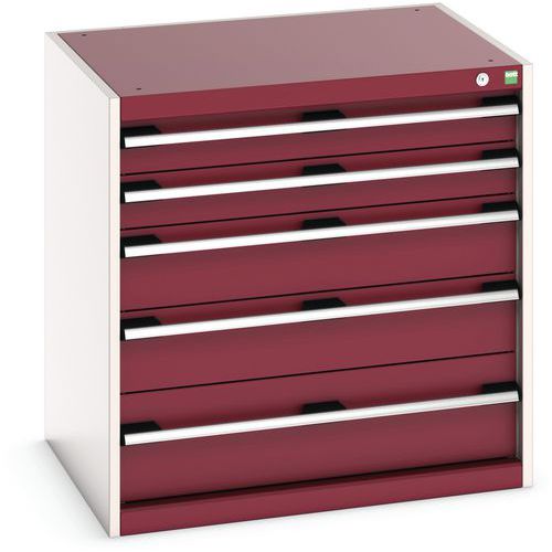 Dílenská zásuvková skříň Bott Cubio, 80 x 80 x 65 cm, 5 zásuvek, šedá-červená