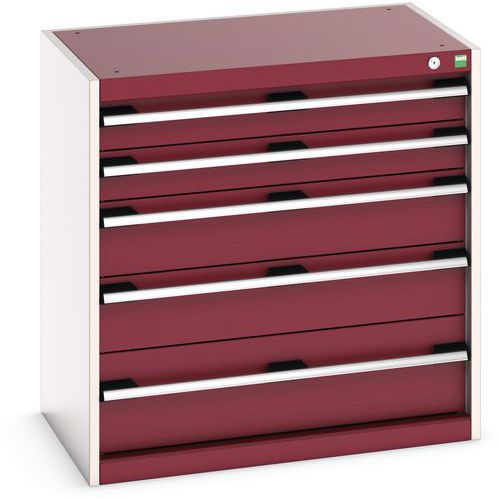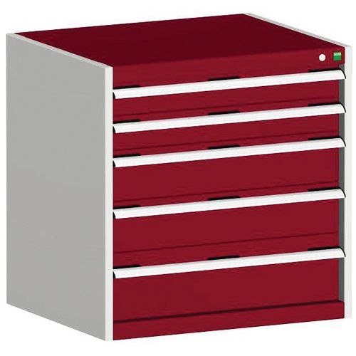 Dílenská zásuvková skříň Bott Cubio, 80 x 80 x 52,5 cm, 5 zásuvek, šedá-červená