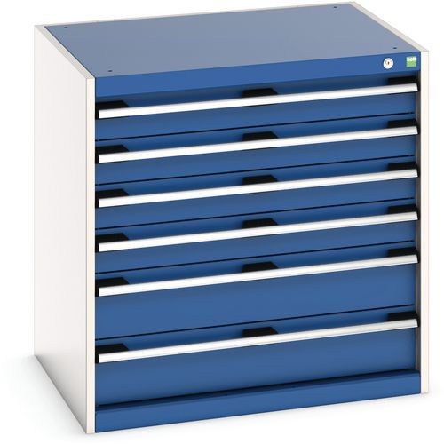Dílenská zásuvková skříň Bott Cubio, 80 x 80 x 65 cm, 6 zásuvek, šedá-modrá