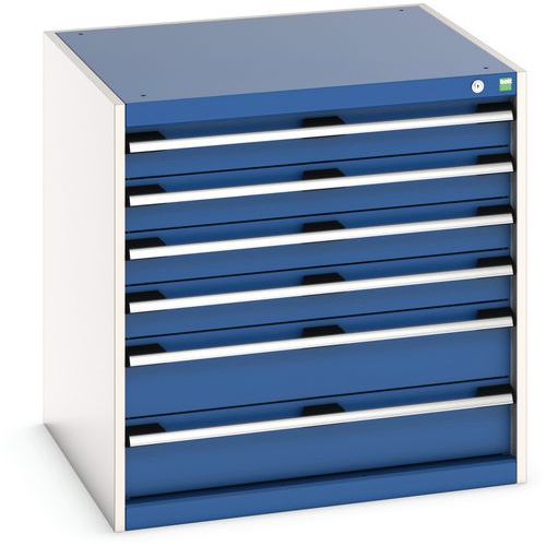 Dílenská zásuvková skříň Bott Cubio, 80 x 80 x 75 cm, 6 zásuvek, šedá-modrá