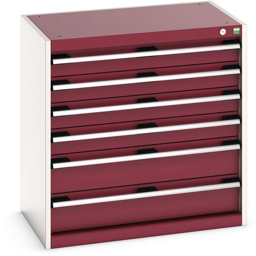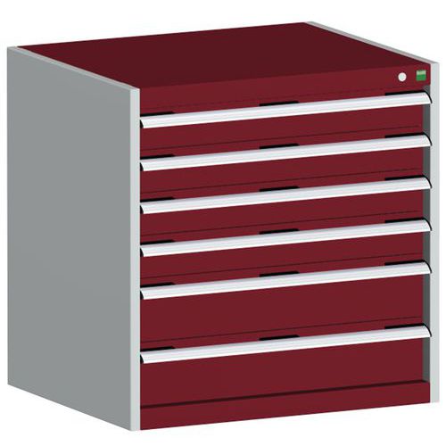Dílenská zásuvková skříň Bott Cubio, 80 x 80 x 52,5 cm, 6 zásuvek, šedá-červená