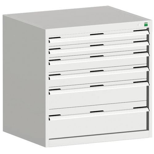 Dílenská zásuvková skříň Bott Cubio, 80 x 80 x 65 cm, 6 zásuvek, šedá-šedá