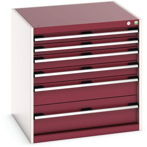 Dílenská zásuvková skříň Bott Cubio, 80 x 80 x 75 cm, 6 zásuvek, šedá-červená