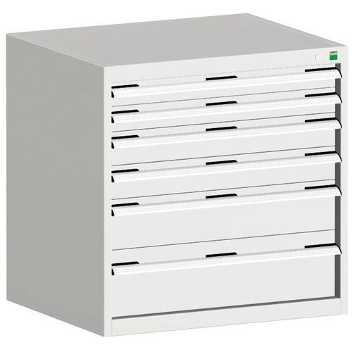 Dílenská zásuvková skříň Bott Cubio, 80 x 80 x 75 cm, 6 zásuvek, šedá-šedá