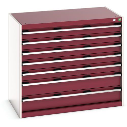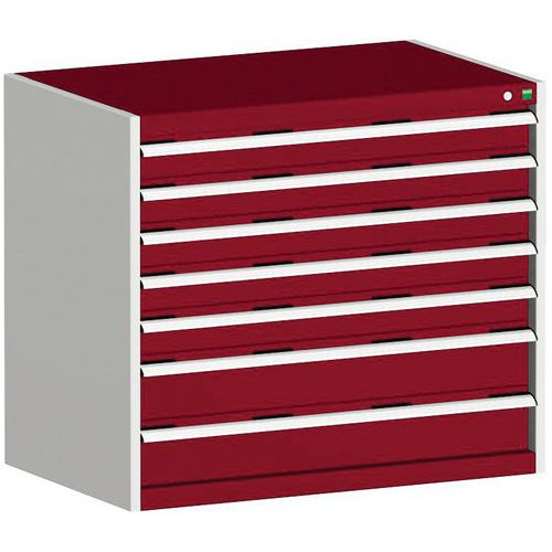 Dílenská zásuvková skříň Bott Cubio, 90 x 105 x 65 cm, 7 zásuvek, šedá-červená