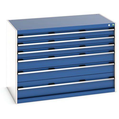 Dílenská zásuvková skříň Bott Cubio, 90 x 130 x 75 cm, 6 zásuvek, šedá-modrá