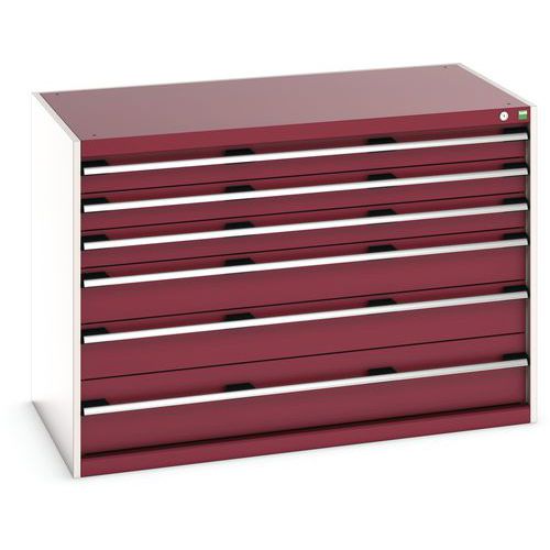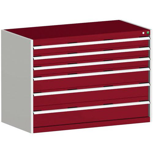 Dílenská zásuvková skříň Bott Cubio, 90 x 130 x 75 cm, 6 zásuvek, šedá-červená