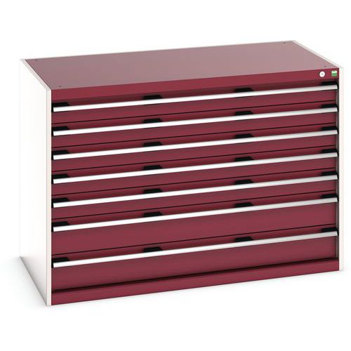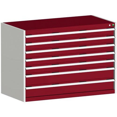Dílenská zásuvková skříň Bott Cubio, 90 x 130 x 75 cm, 7 zásuvek, šedá-červená