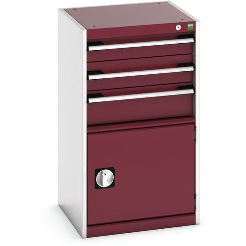 Dílenská zásuvková skříň Bott Cubio, 90 x 52,5 x 52,5 cm, 3 zásuvky, 1 skříňka, šedá-červená