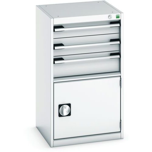 Dílenská zásuvková skříň Bott Cubio, 90 x 52,5 x 52,5 cm, 3 zásuvky, 1 skříňka, šedá-šedá