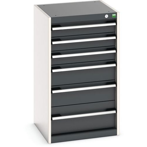 Dílenská zásuvková skříň Bott Cubio, 90 x 52,5 x 52,5 cm, 6 zásuvek, šedá-antracit