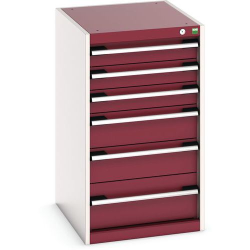 Dílenská zásuvková skříň Bott Cubio, 90 x 52,5 x 65 cm, 6 zásuvek, šedá-červená