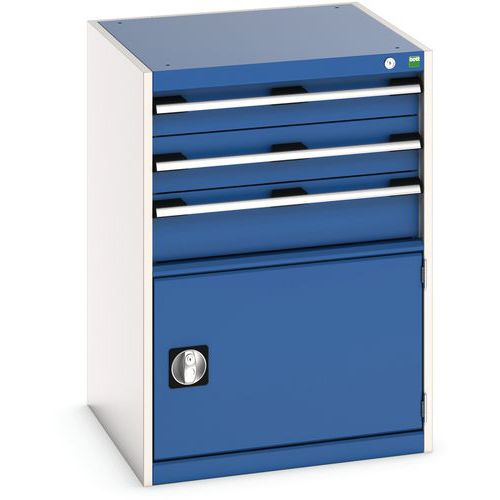 Dílenská zásuvková skříň Bott Cubio, 90 x 65 x 65 cm, 3 zásuvky, 1 skříňka, šedá-modrá