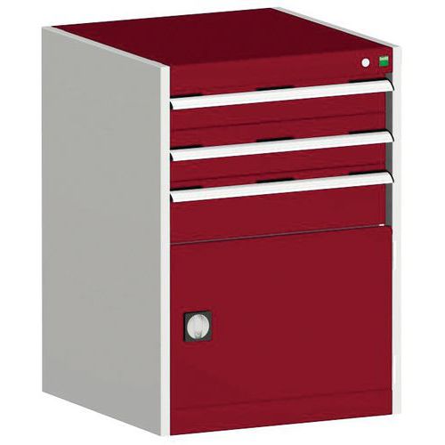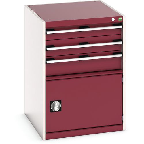 Dílenská zásuvková skříň Bott Cubio, 90 x 65 x 75 cm, 3 zásuvky, 1 skříňka, šedá-červená