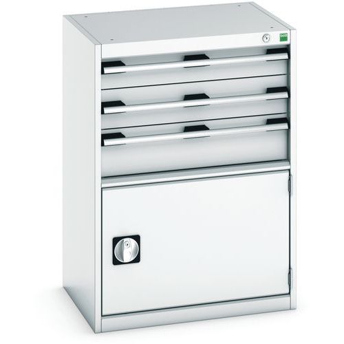 Dílenská zásuvková skříň Bott Cubio, 90 x 65 x 52,5 cm, 3 zásuvky, 1 skříňka, šedá-šedá