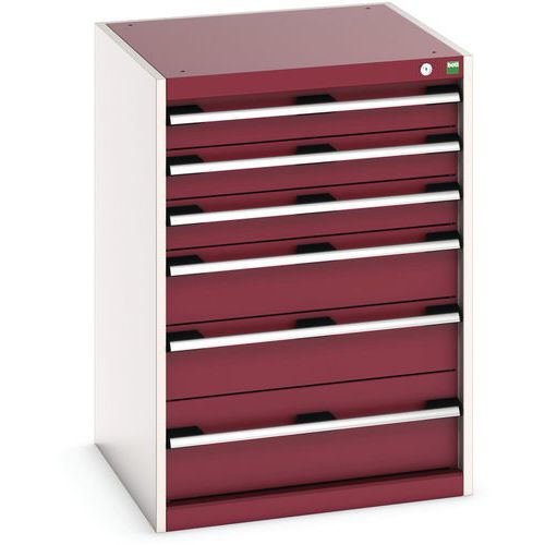 Dílenská zásuvková skříň Bott Cubio, 90 x 65 x 65 cm, 6 zásuvek, šedá-červená