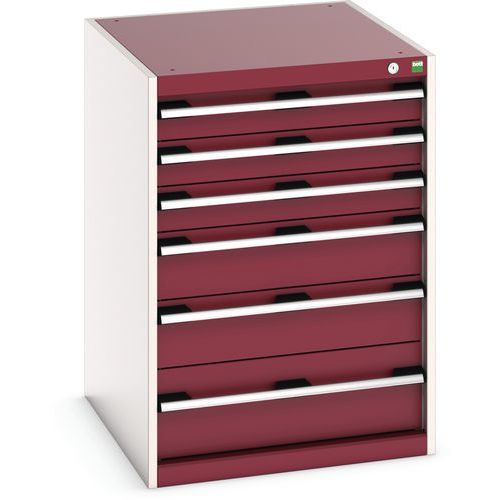 Dílenská zásuvková skříň Bott Cubio, 90 x 65 x 75 cm, 6 zásuvek, šedá-červená