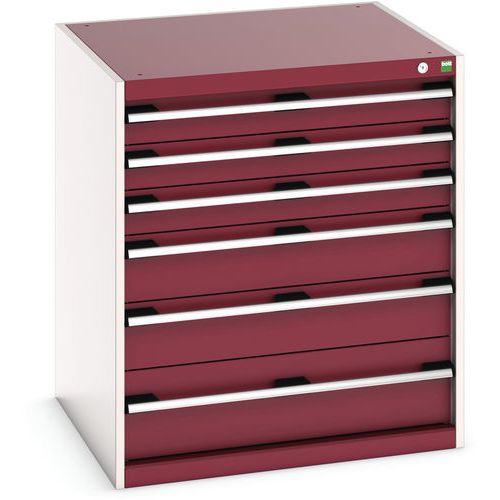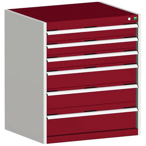 Dílenská zásuvková skříň Bott Cubio, 90 x 80 x 75 cm, 6 zásuvek, šedá-červená