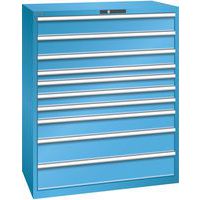 Dílenská zásuvková skříň Lista, 1193x725x1450 mm, 200kg, 10 zásuvek, světle modrá